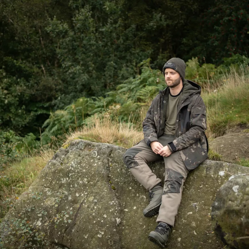 Esterno spesso 320 g/m2, membrana interna antivento 200 g/m2, ginocchia e parte posteriore camo a contrasto, per impedire l'ingresso dell'acqua nelle aree di contatto. Logo Element in rilievo sulla coscia.