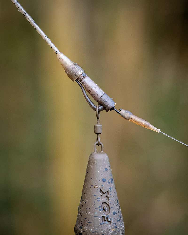 Il sistema di fissaggio del piombo brevettato assicura che il tubo rimanga saldamente in posizione nella clip, impedendogli di scivolare sulla lenza madre, come spesso accade con altri sistemi. Questo è particolarmente importante, poiché un tubo che scivola può danneggiare le squame del pesce durante il combattimento, portando a danni permanenti. La soluzione Fox previene efficacemente questo problema, assicurando che il tubo rimanga sempre nella posizione corretta.