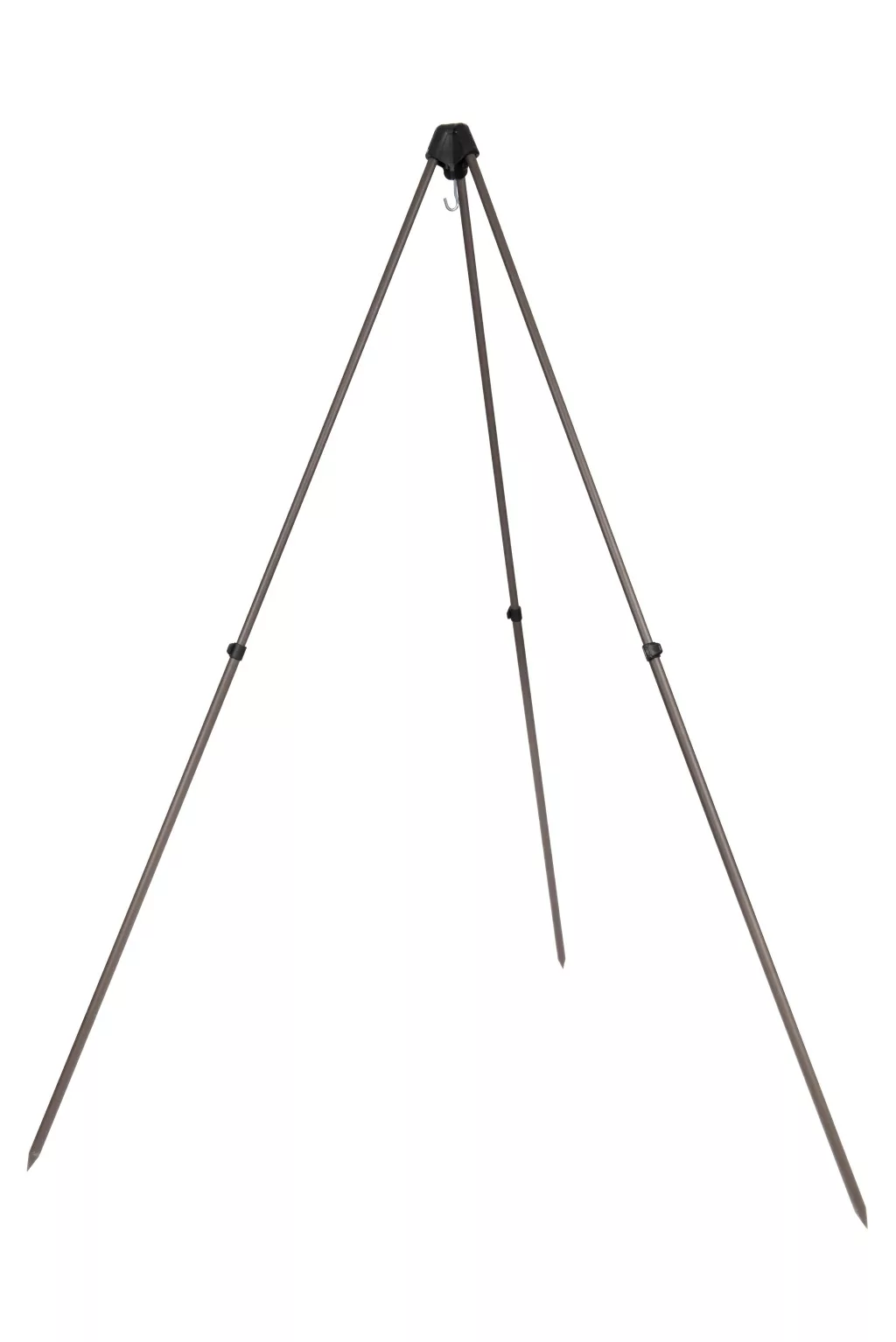 La sicurezza della pesatura è garantita dall'indicatore di altezza massima e dal gancio di pesatura in acciaio inossidabile, alloggiato in un incavo pressofuso. La filettatura da 3/8'' sopra il gancio offre la possibilità di fissare vari accessori, come luci o telecamere. La capacità di carico massima del treppiede è di 60 kg, rendendolo adatto anche per la pesatura delle catture più grandi.