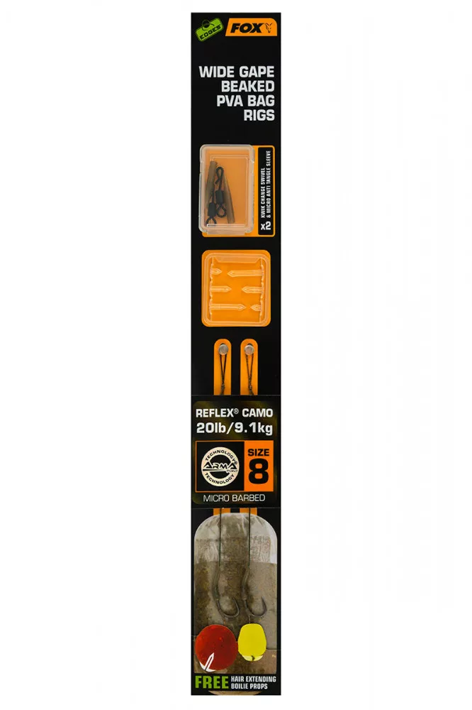 Fox EDGES™ Wide Gape Beaked PVA Bag Rigs 20lb Size 8 Brown & Green Amo pre-legato