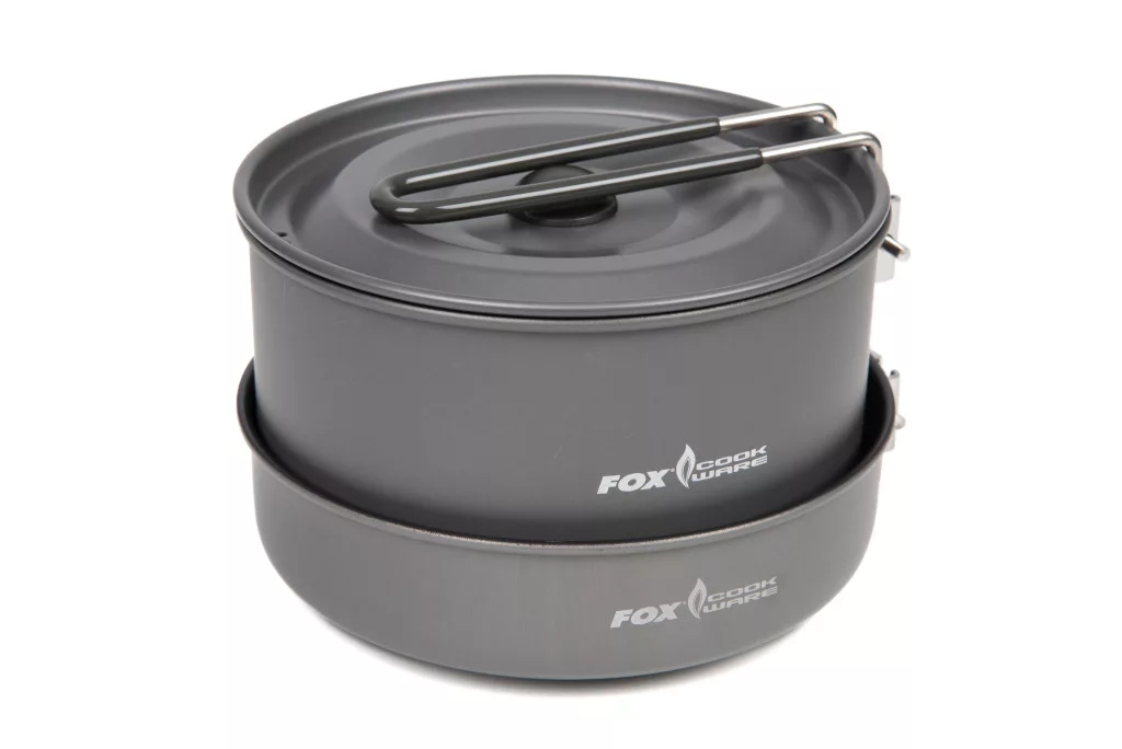 Il __Fox__ Cookware Medium Cookset è un set da cucina compatto in tre pezzi, progettato specificamente per l'uso all'aperto, le battute di pesca e il campeggio. Il set include una padella, una pentola di medie dimensioni e un bollitore da 0,9 litri, soddisfacendo così tutte le esigenze di cottura di base durante i giorni trascorsi in riva al mare.