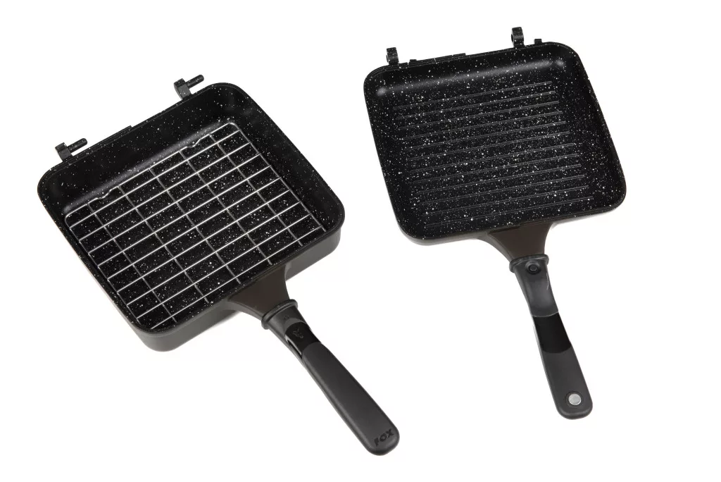 La padella include anche una griglia in acciaio inossidabile che impedisce a torte, pasticcini o pizze di entrare in contatto diretto con la superficie di cottura, riducendo il rischio di bruciature. Le maniglie rimovibili con un pulsante consentono una conservazione compatta, mentre la custodia protettiva in neoprene protegge la padella durante il trasporto. Il prodotto è utilizzabile esclusivamente su fornelli a gas, rendendolo una scelta ideale per i pescatori con fornelli a gas portatili.