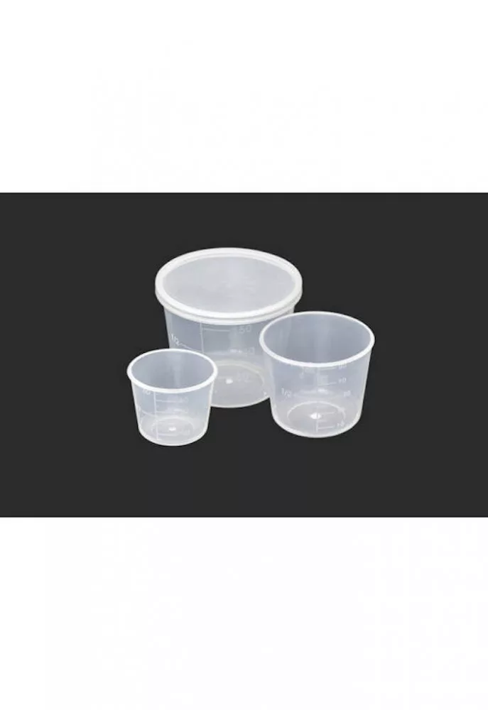 Set di misurini. Set di tre bicchieri per immersione con tappo e scala graduata, in cui si possono aromatizzare le esche destinate all'amo.