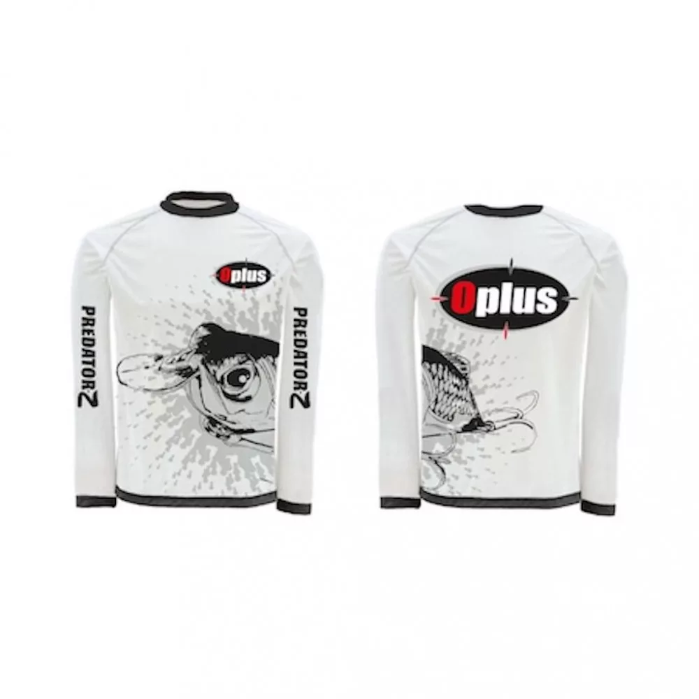 Maglietta da spinning Oplus. T-shirt traspirante realizzata in materiale Technik. Una maglietta da pesca che funge da materiale di base per l'abbigliamento sportivo moderno, in cui il nostro corpo è garantito non suderà, grazie alle membrane traspiranti. Grazie al suo design a maniche lunghe e al colore di base bianco, non dobbiamo temere scottature anche sotto il sole più forte. La maglietta è decorata con un motivo wobbler.