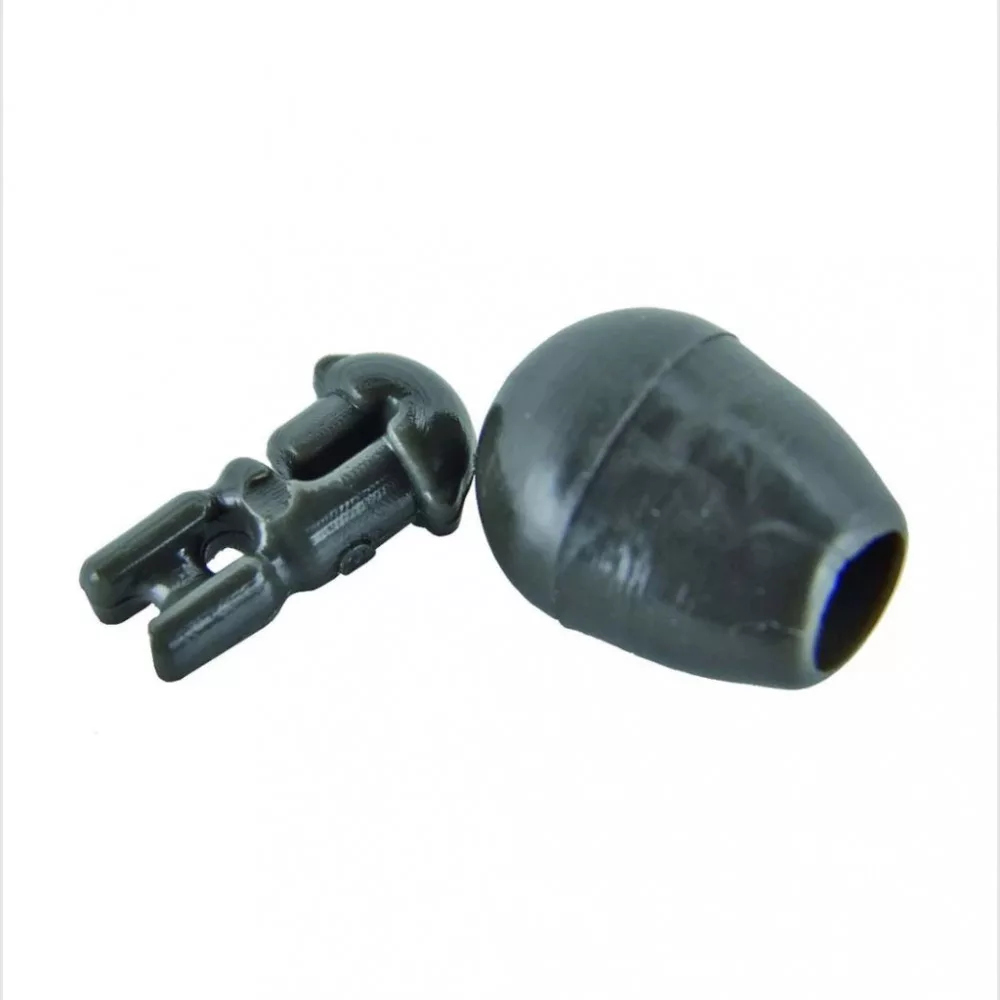 Stopper sviluppato per la pesca a fondo e feeder, realizzato in gomma resistente, con moschettone integrato.