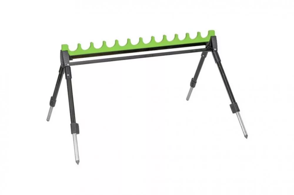 La pesca di successo spesso dipende dalla rapida adattamento ai fattori ambientali mutevoli, per questo sempre più pescatori – come è ben collaudato tra i pescatori sportivi – arrivano in riva all'acqua con diverse attrezzature pronte. Un'ottima alternativa per la loro conservazione è il cavalletto reggicanna Practic a 12 posti, che il produttore ha dotato di una parte superiore imbottita in spugna e di 4 gambe telescopiche regolabili in altezza con chiusura rapida. Lo raccomandiamo ai pescatori a feeder e a match.