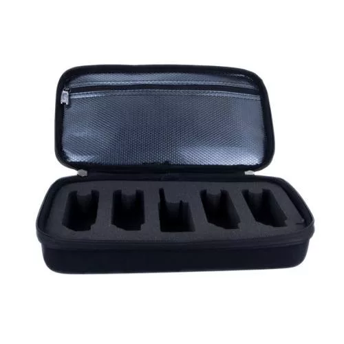 Nella borsa rinforzata possiamo riporre e trasportare in sicurezza 4 avvisatori e 1 ricevitore. Nello scomparto portaoggetti sul coperchio interno, anche gli swingers trovano comodamente posto.