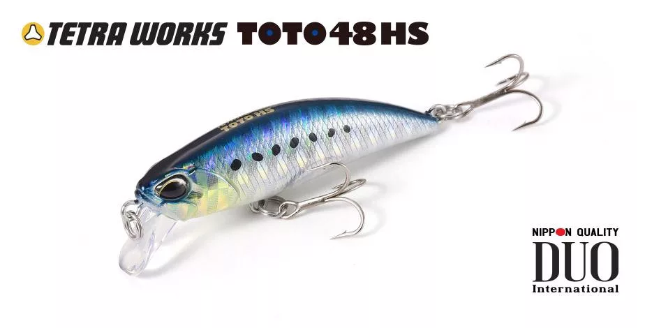 Il modello affondante pesante Duo Tetra Works Toto 48HS è una versione migliorata del Toto 48S, che offre migliori proprietà di lancio e capacità di presa d'acqua. Non solo è stato aggiunto peso, ma anche l'angolo e la forma della paletta sono stati modificati per catturare l'acqua in modo ancora più efficace.