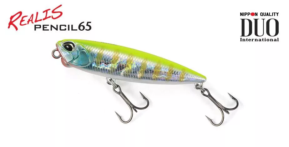 Il Realis Pencil 65 è l'ultimo membro della famiglia DUO Pencil, che stabilisce un nuovo standard nel campo dei walking baits. Grazie alle sue dimensioni compatte, raggiunge luoghi che altre esche non possono raggiungere.