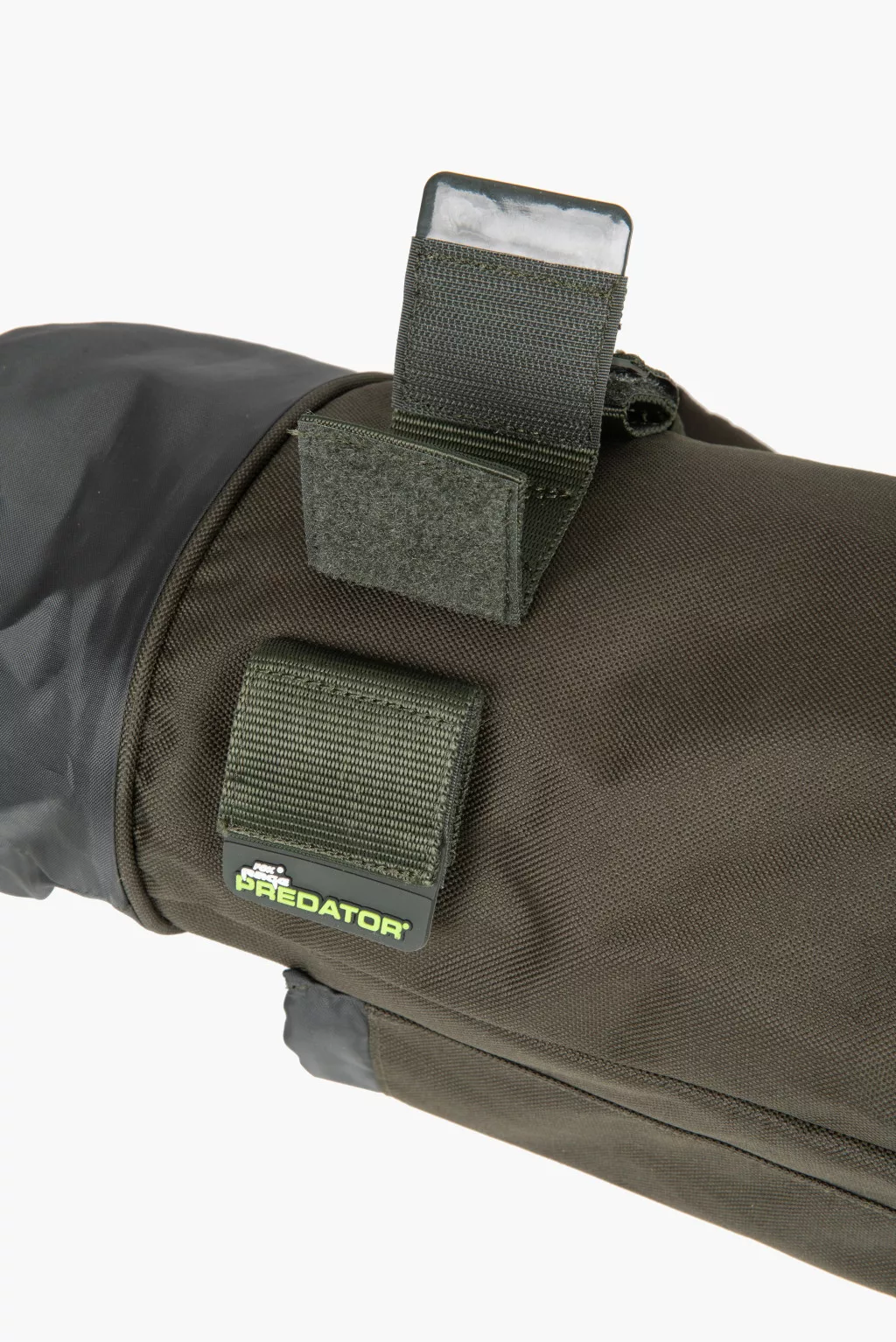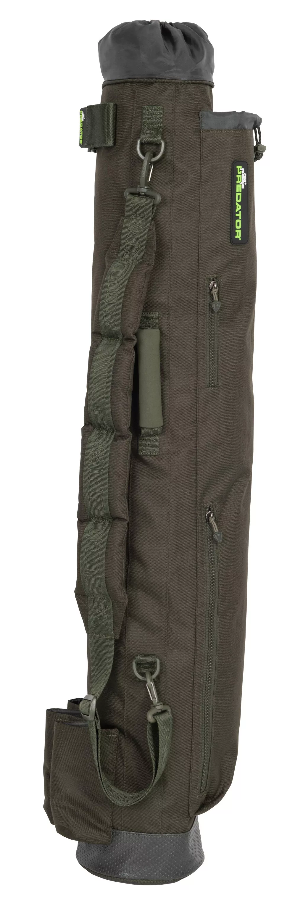 La composizione del materiale della Predator Quiver è 85% poliestere, 10% poliuretano e 5% PVC, il che garantisce prestazioni a lungo termine, proprietà idrorepellenti e resistenza all'abrasione. Il design con diametro di 16 cm e lunghezza di 100 cm offre una dimensione ideale per la maggior parte dei tipi di canne da pesca, pur rimanendo facile da maneggiare e trasportare.