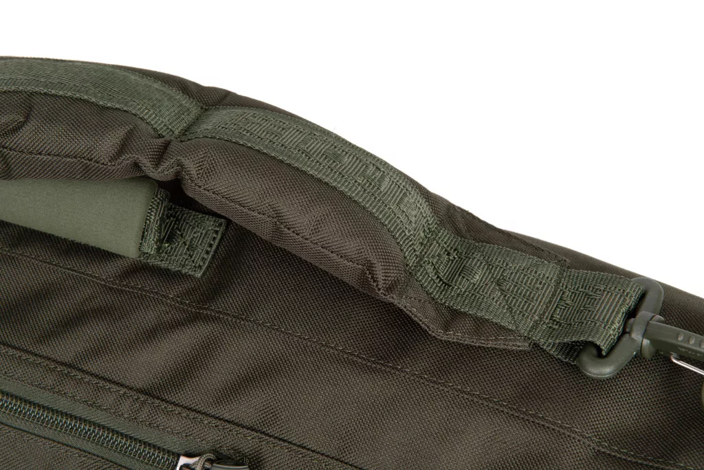 Gli scomparti laterali con cerniera della sacca per canne offrono ulteriore spazio di archiviazione per accessori piccoli ma importanti, come i piombi o gli indicatori Drop Off, in modo che ogni strumento possa essere riposto in modo organizzato e facilmente accessibile. Il trasporto confortevole è assicurato da una tracolla regolabile e imbottita, che offre un comfort duraturo anche su lunghe distanze.