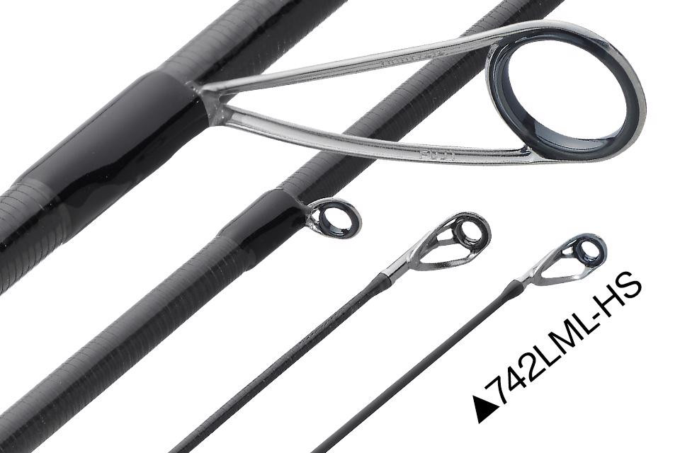 Utilizza anelli Torzite leggeri con telaio in titanio. Riduce il peso della canna e migliora la sensibilità. (Solo l'anello di punta è un anello SiC con telaio in titanio.) La giunzione adotta un sistema a spigot ferrule (giunto a spigot) di alta precisione che garantisce una curva di flessione liscia. Utilizza un portamulinello ECS che offre alta sensibilità e maneggevolezza delicata. L'impugnatura separata è realizzata in EVA resistente e anticorrosione. Grazie al suo design senza impugnatura anteriore, il fusto è facilmente accessibile.