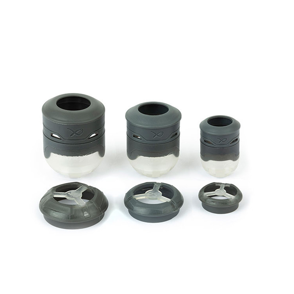 Le tazze sono realizzate in materiale TPR flessibile, che protegge il carbonio della canna fissa dai danni, garantendo al contempo la flessibilità e la durata della tazza. Il materiale non è solo resistente, ma anche leggero, quindi non influisce sulle prestazioni della canna fissa e non appesantisce i movimenti legati alla pesca. I piccoli fori sul fondo consentono di alimentare micro pellet in un'area più ristretta che mai, e assicurano un rilascio uniforme di pastura e pellet.