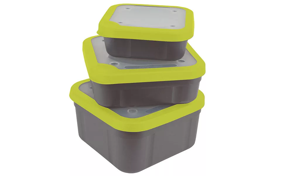 Una nuova generazione di scatole per esche da FOX. L'uso di queste scatole è illimitato, tutto può essere conservato al loro interno, dalle esche vive ai semi, dalle pasture ai pellet. Grazie al coperchio in dotazione, i materiali all'interno sono ventilati attraverso piccoli fori. Il materiale è plastica extra resistente. La scatola premium FOX si chiude correttamente e, grazie al bordo del coperchio in gomma, rimane salda sulla scatola sia al freddo che al caldo.