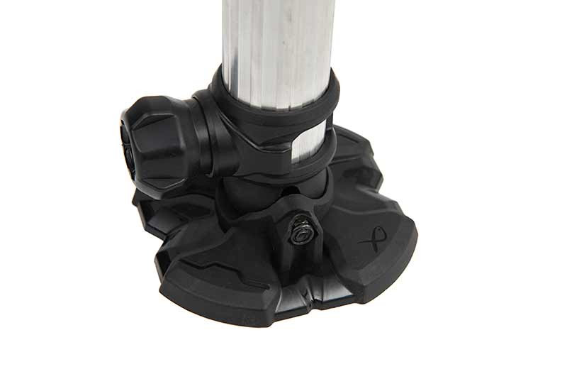 La gamba è dotata di grandi piedini mobili a 360° che garantiscono un'eccellente aderenza su qualsiasi superficie. Questa caratteristica è estremamente importante quando si pesca su terreni bagnati o instabili, poiché la stabilità è fondamentale per il successo.