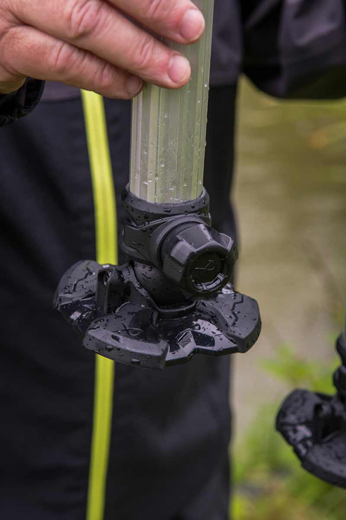 La gamba è dotata di grandi piedini mobili a 360° che garantiscono un'eccellente aderenza su qualsiasi terreno. Questo è particolarmente importante in un ambiente di gara, dove stabilità e sicurezza sono fondamentali per una pesca di successo. Grazie al design innovativo, garantisce una tenuta adeguata anche su superfici bagnate o irregolari.