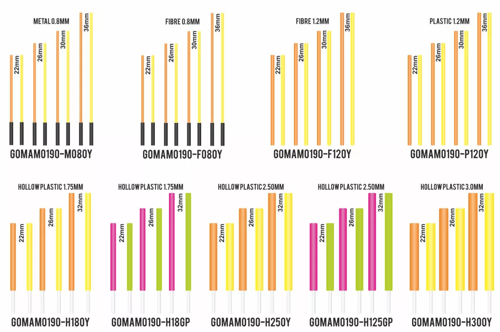 Garbolino Flotteurs Competition Series SP Fiber Antenna Kit 1,20mm 8pz - Rosso e Giallo in 4 misure