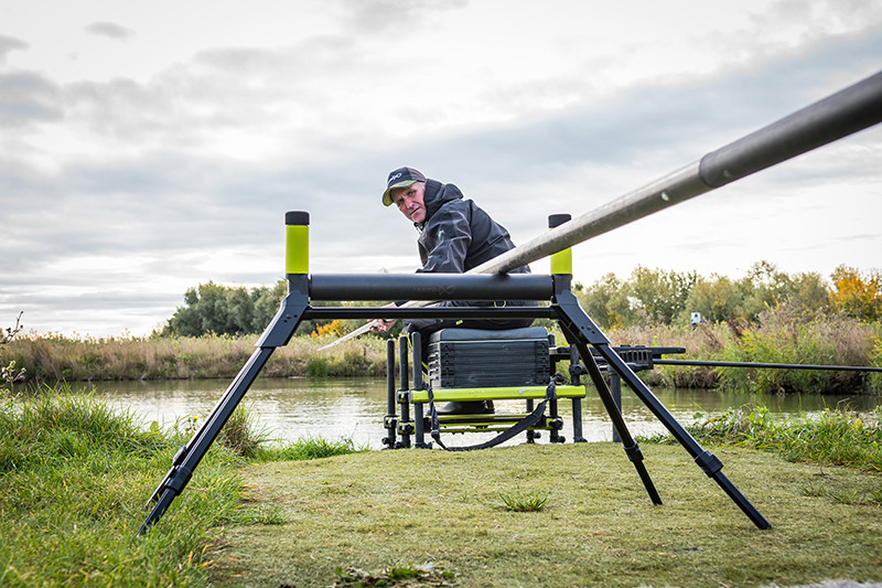 Le gambe estensibili del Matrix Compact Single Pole Roller permettono di regolare facilmente il rullo all'altezza desiderata, fino a 670 mm. Questa funzione è particolarmente utile quando si incontrano livelli d'acqua e condizioni del terreno variabili. I piedini di grandi dimensioni offrono una stabilità extra, in modo che il rullo rimanga saldamente in posizione anche in caso di vento forte e acqua in movimento.
