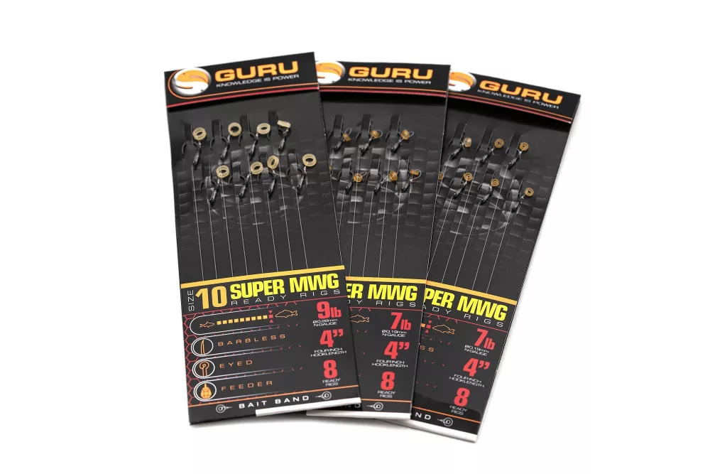 Guru SMWG Bait Bands 12 senza ardiglione, con occhiello, amo pre-legato in monofilo 8 pz