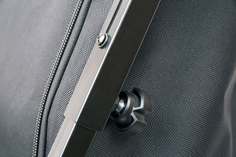 Il trasportatore a quattro ruote è stato progettato per i pescatori che necessitano di un sistema di trasporto compatto per portare grandi quantità di attrezzatura al loro posto di pesca. È completamente regolabile in lunghezza e altezza, in modo da poter essere configurato esattamente come richiesto dalla situazione.