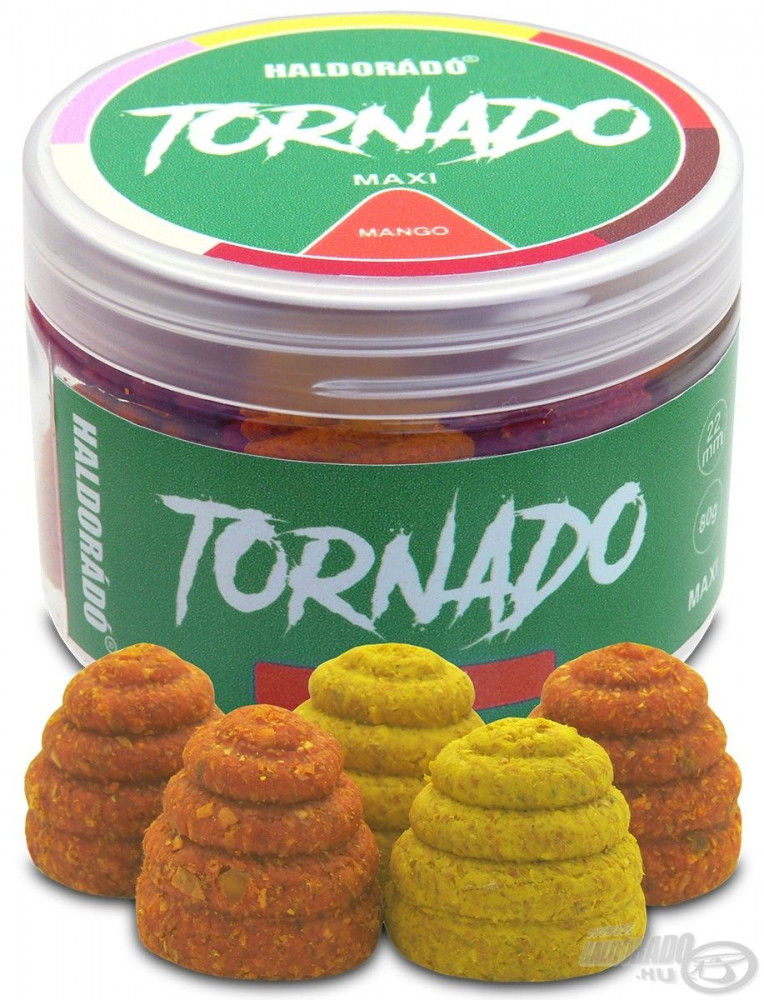 Il TORNADO MAXI ha mantenuto la forma speciale delle esche TORNADO, ma a differenza dei suoi predecessori, è un'esca affondante e solubile. Grazie alla sua dimensione aumentata di 22 mm, è stato ottimizzato per i carpisti selettivi di grandi carpe, ma può anche rappresentare una soluzione per i pescatori a feeder che mirano a pesci capitali, se è necessario selezionare i più grandi. Durante la dissoluzione, rilascia continuamente sapori e aromi, attirando rapidamente l'attenzione dei pesci.