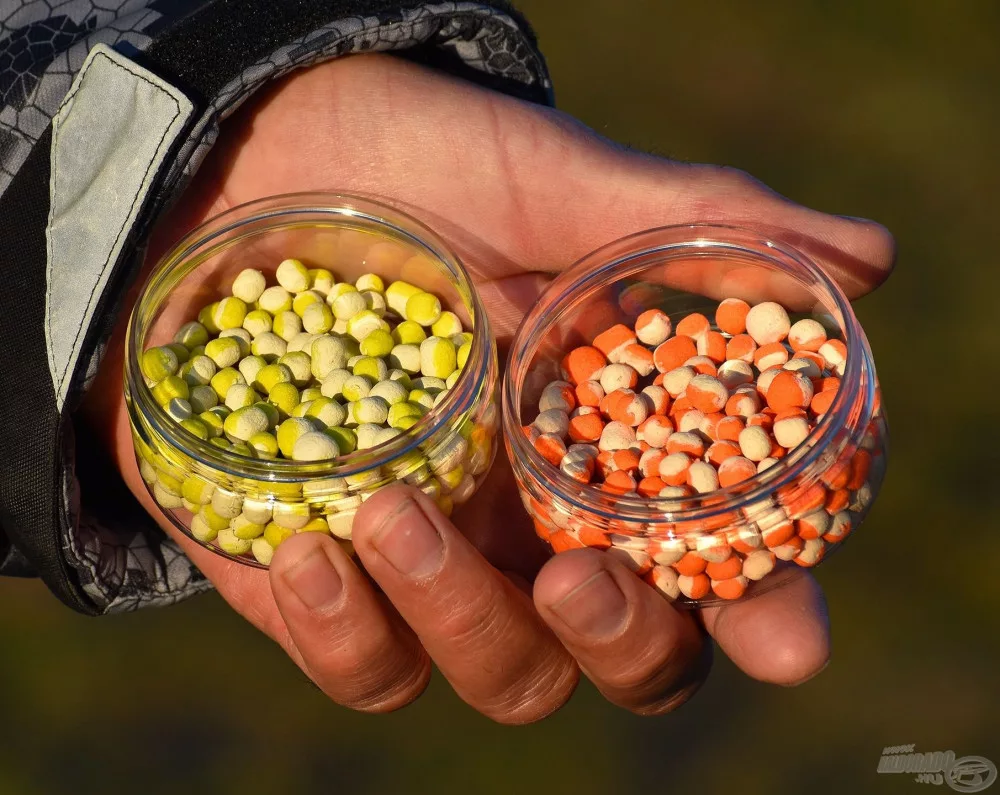 Ogni sacchetto contiene una piccola bustina, con piccoli granuli di pellet colorati e aromatizzati. Il pescatore può dosarli all'esca di base a seconda dell'appetito dei pesci. Ci sono luoghi dove le carpe abboccano così delicatamente che ogni granulo colorato è un deterrente, mentre altrove, questo aumenta l'appetito. Lasciamo ai pescatori la scelta di usarli o meno!