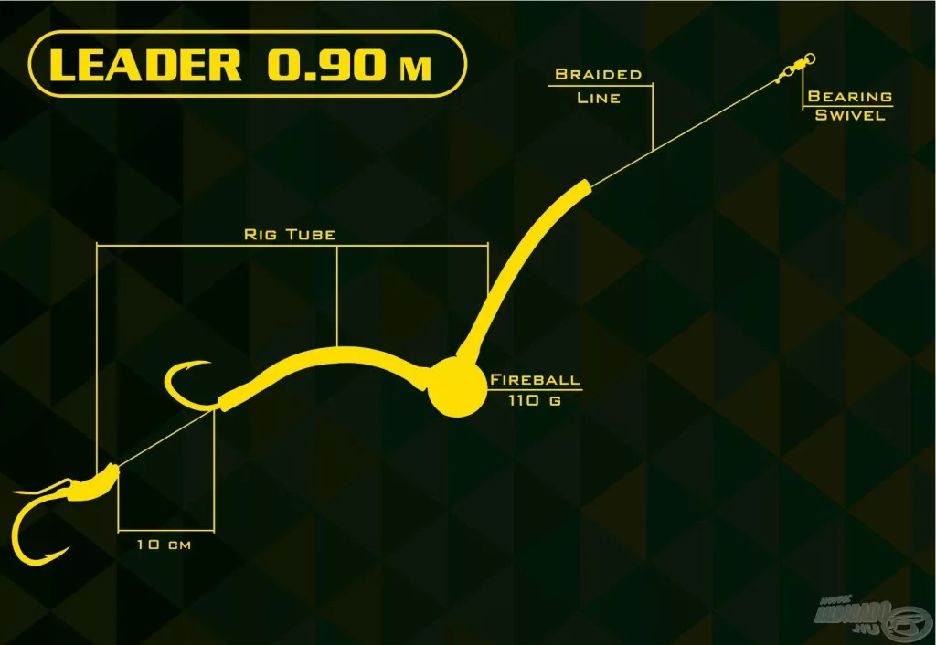 È consigliato per fiumi e laghi più profondi. Oltre alla semplice presentazione dell'esca viva, consente anche l'innesco di pesci esca di dimensioni extra-large. Il cuore del terminale è un piombo speciale con cui possiamo far "camminare" l'esca con grande precisione, centimetro dopo centimetro, nelle fosse di diverse profondità. Innesco del pesce esca: è consigliabile fissare l'amo vicino al piombo sul naso e l'amo più lontano sulla parte posteriore del pesce esca. La lunghezza totale del terminale è di 90 centimetri.