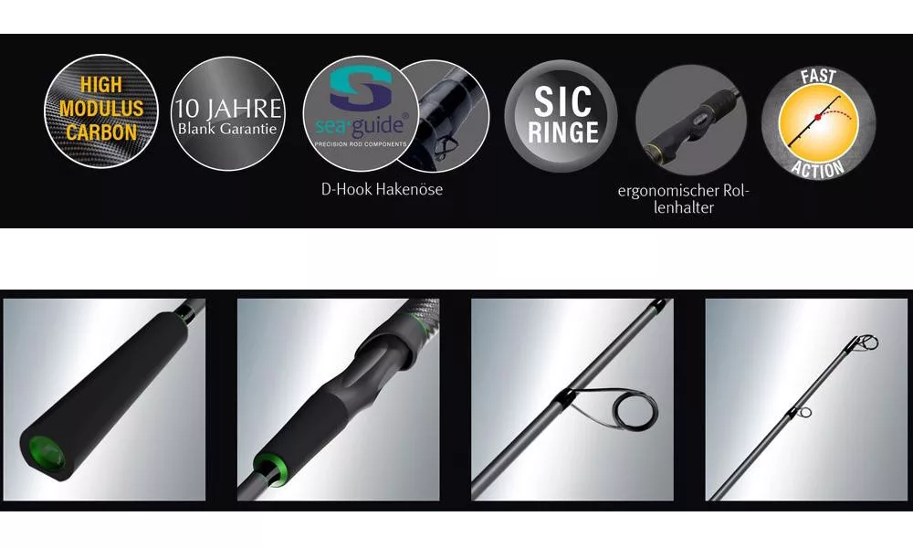 La sua lunghezza di 2,10 metri e il peso di lancio precisamente impostato di 8-29 grammi la rendono ideale per le moderne tecniche di baitcast e casting.