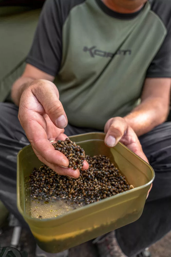 Uno dei maggiori vantaggi delle scatole per esche Korum Bait Tub sono i coperchi a chiusura positiva, che sigillano saldamente la scatola, impedendo che le esche si rovescino accidentalmente. Questo è particolarmente importante se si conservano più scatole impilate, poiché i coperchi assicurano che ogni contenitore possa essere impilato in modo stabile e sicuro. Questo design consente una conservazione compatta e ordinata, che può essere particolarmente utile durante le battute di pesca.