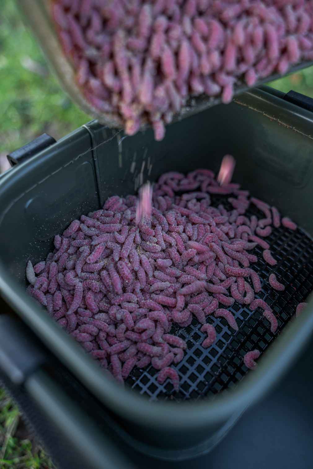 In materiale 100% EVA. Questo materiale è estremamente durevole e resistente all'umidità e allo sporco. Il materiale EVA è leggero ma robusto, il che garantisce una lunga durata e affidabilità alla borsa esche. La borsa è realizzata in materiale EVA impermeabile, che protegge il contenuto interno da pioggia e umidità. Inoltre, è facile da pulire, il che è particolarmente utile per la gestione delle pasture. Uno dei vassoi interni è dotato di una rete da 3 mm che consente di setacciare esche naturali e pasture. Questa rete aiuta a rimuovere l'umidità e a mantenere la freschezza dell'esca.