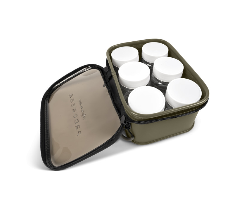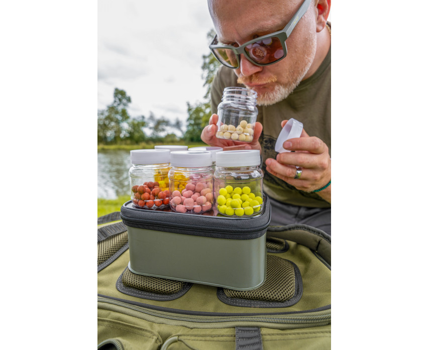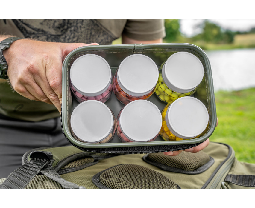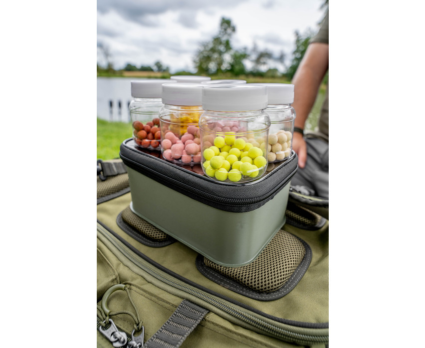 Durante la progettazione di questi utili accessori, un aspetto importante è stato la loro perfetta integrazione nella gamma di borse Korum. Disponibile con contenitori per esche. Grazie ai coperchi trasparenti color fumo, è facile vedere cosa è conservato all'interno. Realizzata in materiale EVA resistente all'usura e durevole, è progettata per durare a lungo.