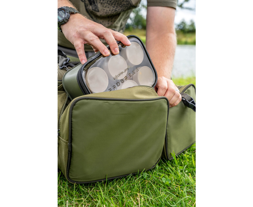 Il pacchetto include: Korum Progress EVA Hookbait Pouch 6 Tub Borsa porta esche