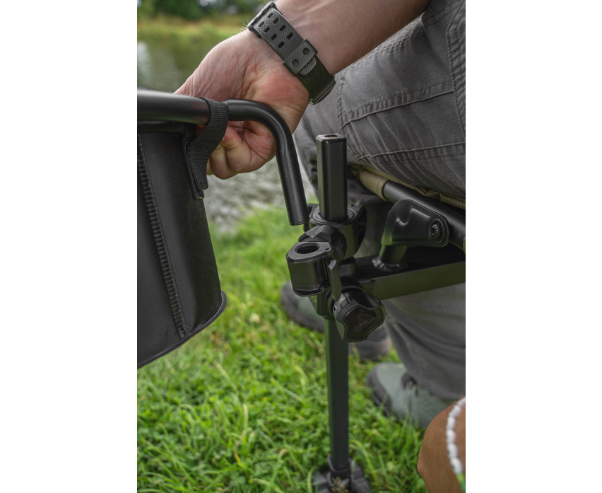 Il sistema Any Chair trasforma le sedie in un sistema di attrezzatura completamente modulare. Basta aprire il giunto per fissarlo alla sedia e utilizzare gli inserti inclusi per ottenere la migliore vestibilità. Con le viti di fissaggio laterali possiamo regolare l'angolo migliore per la situazione data. Fornito con inserti rotondi da 23 mm, rotondi da 25 mm e quadrati da 23 mm. Si adatta direttamente alle sedie accessorie Korum X25 e S23.