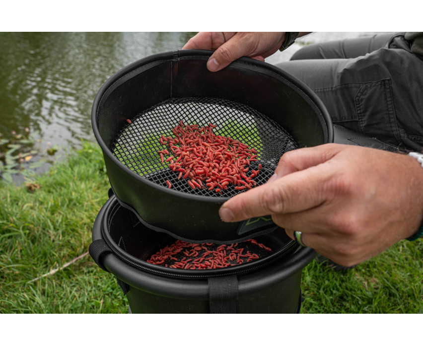 Il pacchetto include: Korum Any Chair EVA Bowl & Riddle Ciotola per esche e setaccio con supporto