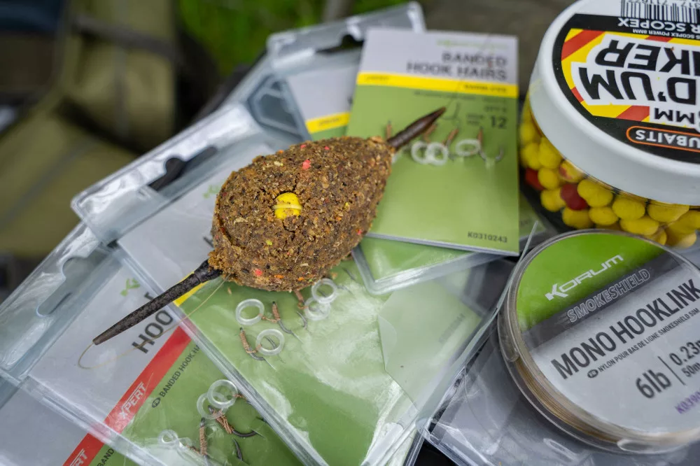 Il pacchetto contiene: Korum Banded Hook Hairs 14 Amo da Carpa con Barbiglio e Anello per Pellet 5pz