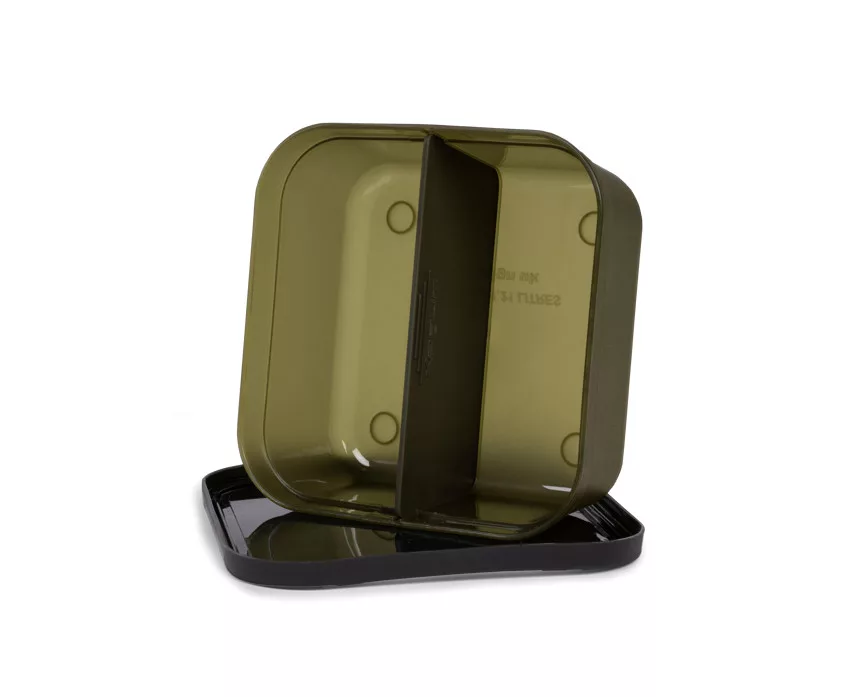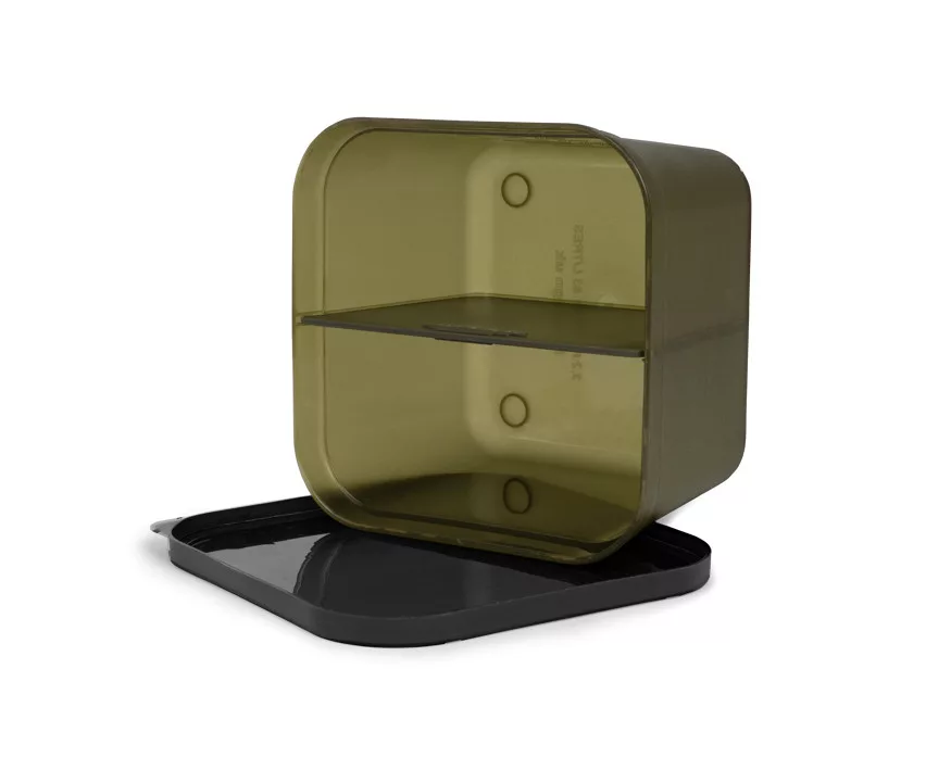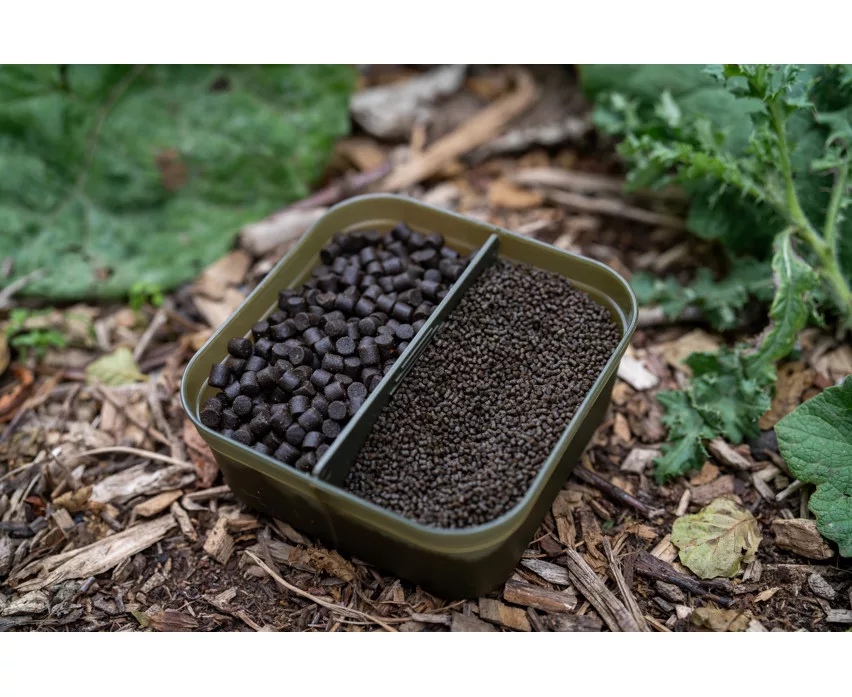 Questo nuovo design consente di conservare esche e pasture diverse nello stesso contenitore, perfettamente separate l'una dall'altra da un divisorio saldamente aderente. Viene fornito con un coperchio a chiusura ermetica.