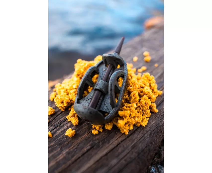 La struttura a nervature centrali permette all'esca di rimanere saldamente nel pasturatore, mentre la pastura si dissolve efficacemente, direttamente vicino all'amo. Questo aumenta notevolmente il numero di catture, soprattutto in situazioni in cui la precisione e la presenza concentrata dell'esca sono fattori decisivi. Il peso di 45 grammi è particolarmente adatto per condizioni di acqua leggermente corrente o ferma, quando la stabilità e una maggiore distanza di lancio sono importanti.