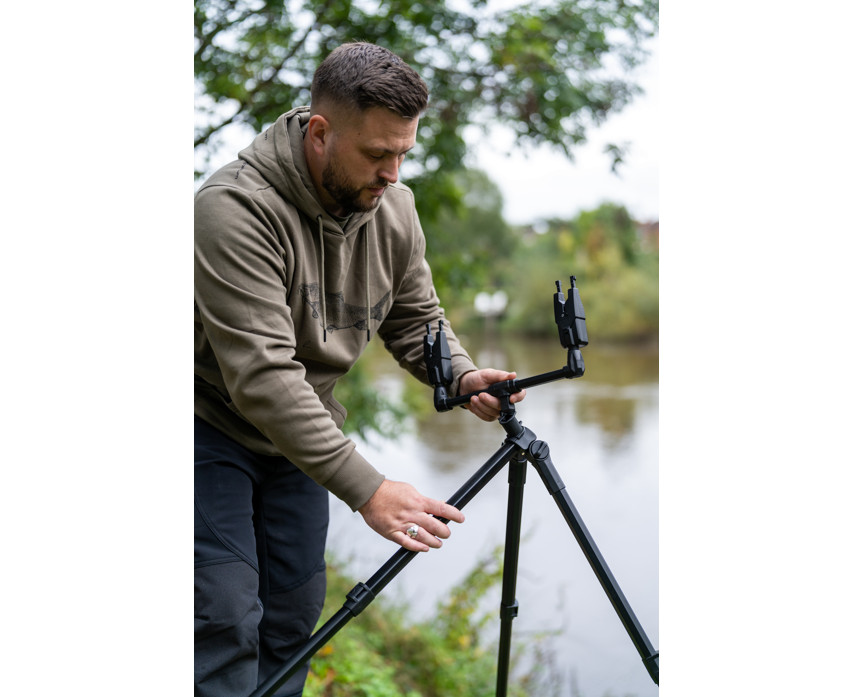 Treppiede Progress Compact River Tripod. Una versione compatta del nostro leggendario River Tripod, ora con buzz bar anteriore e posteriore. Questa configurazione super stabile è realizzata con estrusioni anti-torsione, garantendo un supporto sicuro e stabile per canne e mulinelli. Il telaio può essere esteso durante l'uso, ma grazie alle doppie chiusure Cam Lock, può essere facilmente riposto, occupando molto meno spazio durante il trasporto. I buzz bar spessi sono incredibilmente robusti e dispongono di un eccellente sistema di sgancio rapido senza filettatura, eliminando la necessità di avvitare e svitare durante il montaggio e lo smontaggio. Basta premere il pulsante di sgancio del Cam Lock, inserire gli elementi al loro posto e la pesca può iniziare! Il buzz bar posteriore può essere regolato in diverse posizioni di inclinazione.