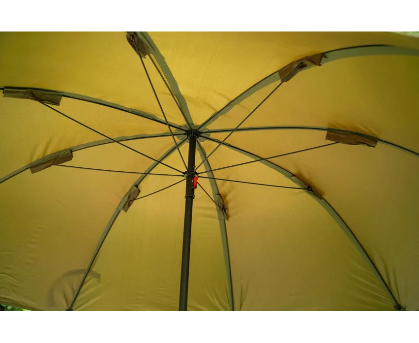 Il telo è realizzato in tessuto impermeabile, resistente a una colonna d'acqua di 5000 mm, che protegge efficacemente dalla pioggia e dall'umidità. Le cuciture e le giunzioni rinforzate e sigillate garantiscono che l'ombrellone mantenga le sue proprietà di tenuta all'acqua a lungo termine, anche con un uso intenso. La combinazione di una struttura stabile e una forma classica offre un rifugio confortevole al pescatore, conferendo allo stesso tempo un aspetto elegante all'attrezzatura.