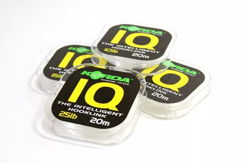 Korda IQ Fluorocarbon Hooklink è un filo terminale in fluorocarbon che, grazie al suo indice di rifrazione simile a quello dell'acqua, è quasi invisibile in acqua. Rispetto ai normali monofili in poliammide, è leggermente più rigido, quindi non tende ad aggrovigliarsi e la carpa ha più difficoltà a espellere l'amo legato a un tale terminale. Il prodotto è disponibile in versioni da 10, 15, 20 e 25 libbre di resistenza, in confezioni da 20 metri. La versione da 10 libbre è consigliata per montature delicate; le versioni da 15 e 20 libbre sono terminali universali; la versione da 25 libbre è più adatta per la realizzazione di terminali estremamente rigidi (i cosiddetti 'stiff rig').