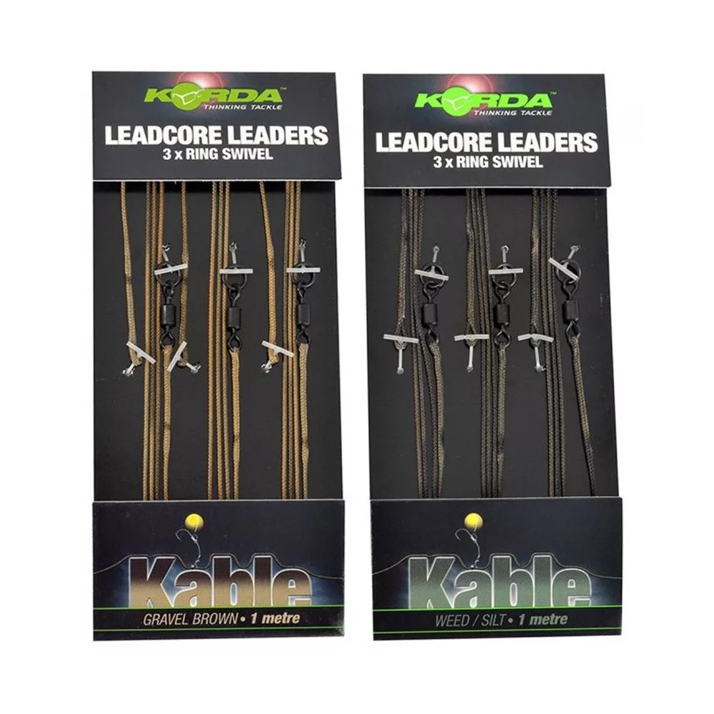 I terminali Korda Leadcore Ring Swivel sono disponibili anche in lunghezze di 1 metro e 50 cm, così puoi scegliere facilmente il terminale più adatto alla situazione di pesca. La confezione contiene tre terminali, disponibili nei colori Alghe/Fango o Marrone Ghiaia, in modo che il colore scelto si fonda facilmente nell'ambiente subacqueo, nascondendo discretamente l'attrezzatura da pesca.