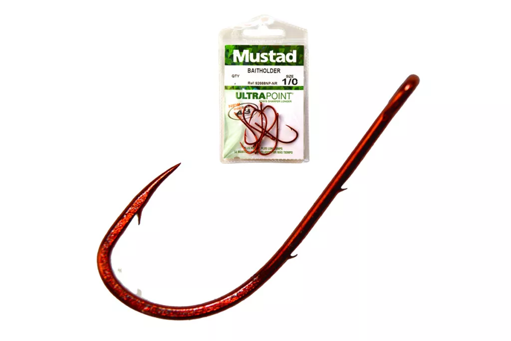Recensioni Mustad Red Baitholder 4/0 Ami ad anello, con ardiglione 6pz