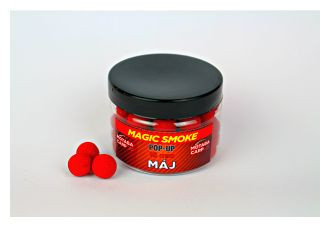 Motaba Carp Magic Smoke Pop-up - 16mm - La Motaba Magic Smoke Pop-up è un'esca galleggiante e solubile, la cui galleggiabilità è stata regolata per poter sollevare un amo di misura 6 per l'intera lunghezza del terminale. Tutta la serie è caratterizzata da un'aromatizzazione potente ma piacevole, accompagnata da colori estremamente accattivanti.