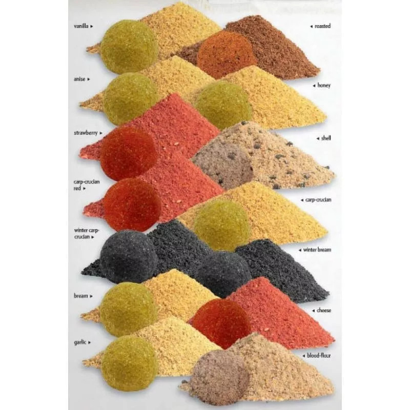 La maggiore facilità di miscelazione, l'effetto potenziato di sapore e aroma, la qualità affidabile e costante, le confezioni che soddisfano al massimo le diverse esigenze (1-3-5-15 Kg) e l'ampia gamma di prodotti disponibili in 20 diversi gusti e composizioni, preparati per diverse specie di pesci, condizioni di corrente e metodi di pesca, sono tutti la chiave per una pesca di successo.