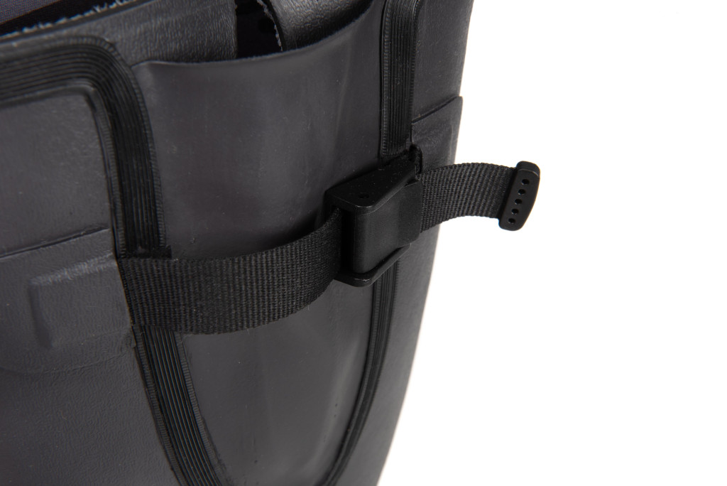 La cinghia e la fibbia regolabili garantiscono una vestibilità comoda, mentre la giunzione impermeabile impedisce all'acqua di entrare all'interno dello stivale.