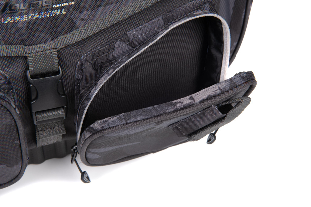 La borsa include anche una mini scatola da pesca, ideale per riporre le esche più importanti, i piccoli accessori e i terminali. Inoltre, è dotata di scomparti separati e anelli a D per il fissaggio, compatibili con il tappetino di disinnesco per pesci Camo Voyager, in modo che gli accessori possano essere collegati in modo sicuro e organizzato.