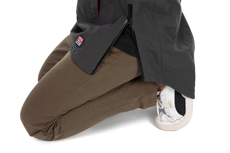 Le cerniere laterali garantiscono libertà di movimento, specialmente in posizione seduta o inginocchiata, ideale per la pesca dalla barca o in riva al mare.