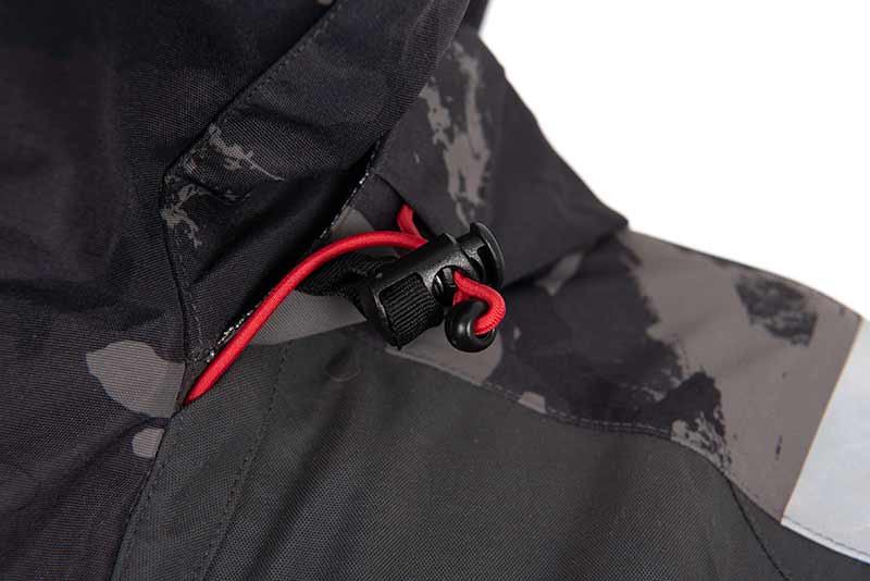 Questa giacca presenta dettagli estremamente funzionali che la rendono vantaggiosa in qualsiasi situazione di pesca: la combinazione di colletto e cappuccio ergonomici separati offre una protezione extra intorno al viso e al collo, mentre la tasca posteriore del cappuccio assicura una facile conservazione.