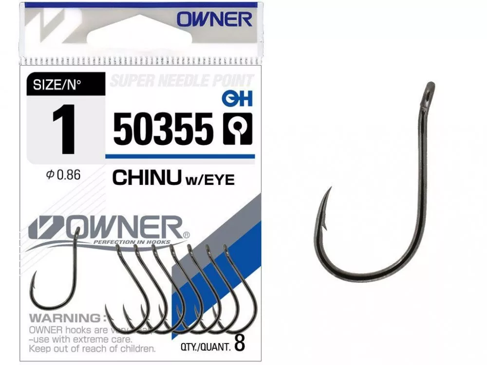 Owner Chinu We 50355 2/0 Amo per boilies con ardiglione, con occhiello 6 pezzi