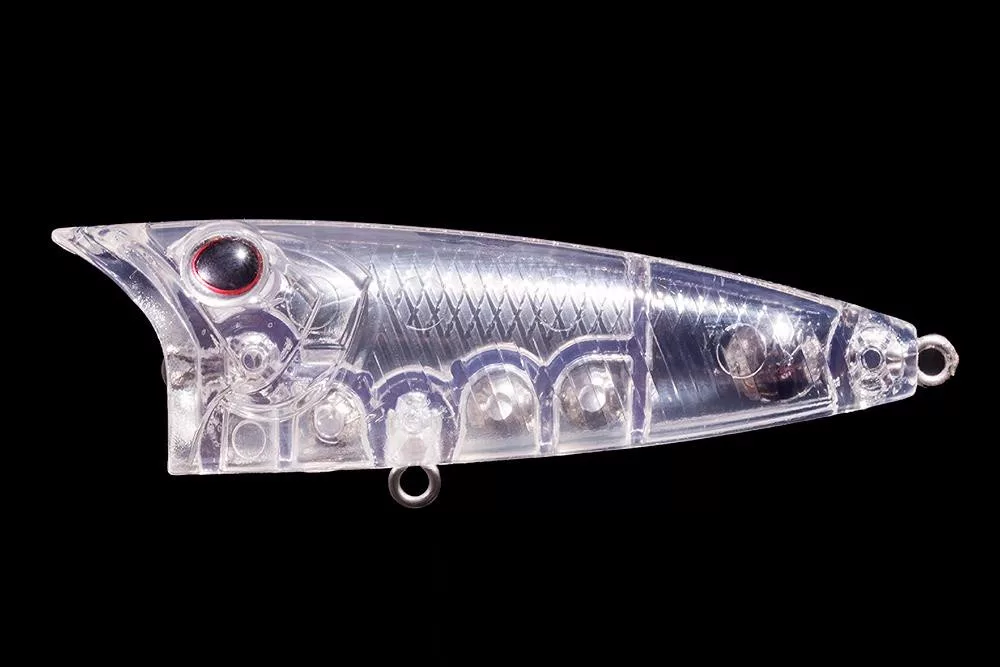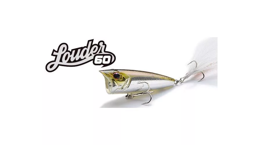 È stato progettato per affrontare la pressione di pesca delle uscite di pesca del fine settimana sui grandi laghi o sui piccoli spot di pesca costieri. Questa esca ha dimensioni minime del corpo, che impediscono agli ami #6 anteriori e posteriori di impigliarsi e alle punte degli ami di toccare la 'bocca' (cup) dell'esca. È stata anche dotata di un occhio di fissaggio verticale (vertical eye) per il riattrezzaggio con ami doppi (double hook tuning). Il suo peso di 8,4 grammi, il baricentro posteriore e il design ad alta gravità specifica facilitano lanci precisi (pinpoint) sul bersaglio, anche con una grande quantità di piume, e consentono lanci lunghi. Il muso lungo e la grande 'bocca' (cup) catturano molta acqua, sollevano la superficie dell'acqua e creano un suono popping (predatory) che indica un pesce predatore fin dal momento dell'impatto, esercitando un'attrazione anche sui grandi persici (big bass) nascosti nella copertura (cover). La struttura 'frangiflutti' (breakwater) sul bordo della 'mascella superiore' spruzza l'acqua presente nella 'bocca' in avanti, senza lasciarla uscire all'indietro. Il movimento moderato della testa (head swing) riduce la distanza di spostamento (travel distance), mentre crea schizzi (splashes), colonne d'acqua (water columns) e 'sputi' (spits). Grazie al design ad alta gravità specifica, è meno influenzato dal vento e non si sposta eccessivamente in avanti nemmeno quando l'esca è animata (activated). La sua postura leggermente verticale (upright) significa che gran parte del suo corpo è sott'acqua, il che attira i persici che esitano a rompere la superficie dell'acqua per paura dei predatori (come gli uccelli), e questo riduce anche la possibilità di mancate abboccate (getting away). Il Louder ha migliorato ogni aspetto delle prestazioni uniche del popper, aggiungendo una nuova dimensione alla sua potenza di combattimento.